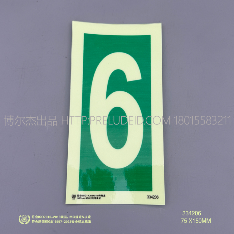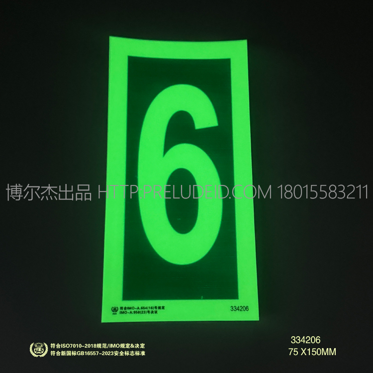 334206数字6-船舶石油新版IMO标准夜光标识防水防油不干胶自发光